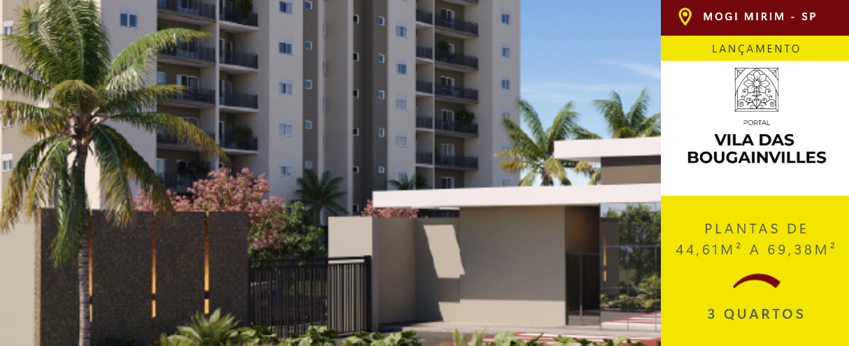 PORTAL VILA DAS BOUGAINVILLES – APARTAMENTOS COM SUITE, 2 E 3 DORMITÓRIOS EM MOGI MIRIM, SP